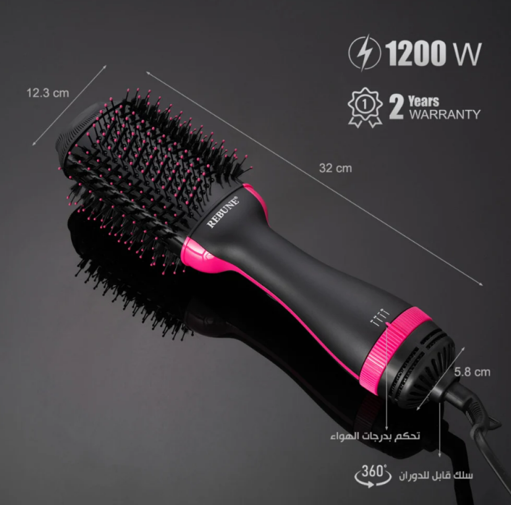- يعمل المصفف على توليد تيار قوي ومتواصل من خلال الفتحات الصغيرة في الفرشة يجفف الهواء الساخن الشعر بسرعة وفعالية، وفي نفس الوقت يساعد في تسهيل عملية التصفيف وتحقيق نتائج أكثر كثافة ونعومة.