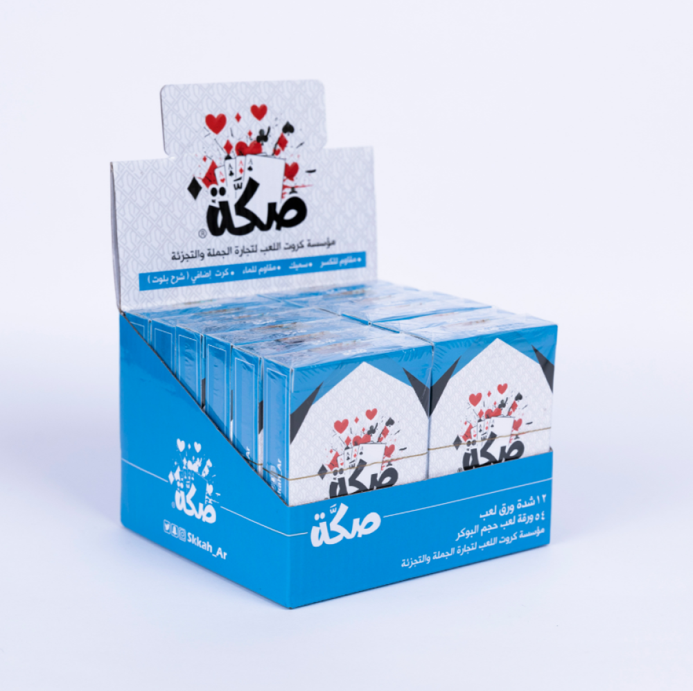ورق صكة الأزرق (البوكر) مكونه من 54 بطاقة، ويتميز هذا الورق بقوته كما أنه مصنوع من البلاستيك ذو الجودة العالية كل التفاصيل المميزه اجتمعت في منتج واحد فريد من نوعه .