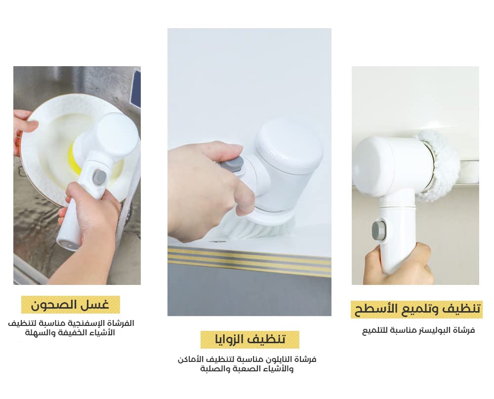 3 رؤوس مختلفة لفرشاة التنظيف السحرية متعددة الاستخدامات