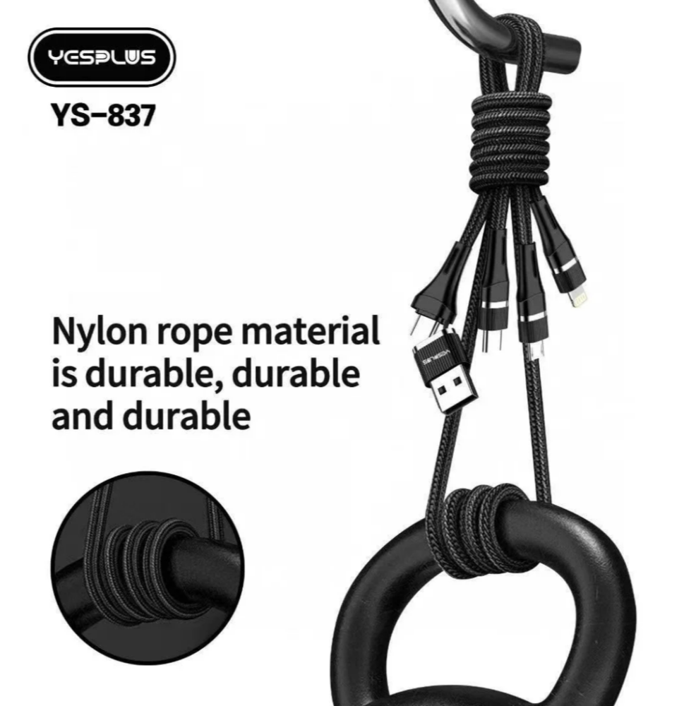 • استمتع بتجربة شحن سريعة وآمنة مع كابل YESPLUS 3 في 2 المعدني السريع، الحل الأمثل لتلبية احتياجات الشحن المتعددة لأجهزتك.