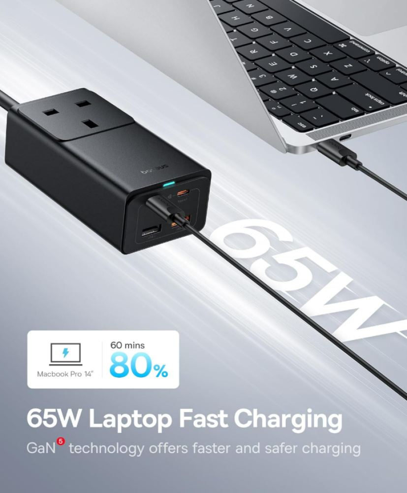 - شحن سريع بقدرة 65 واط مع تقنية GaN5 Pro