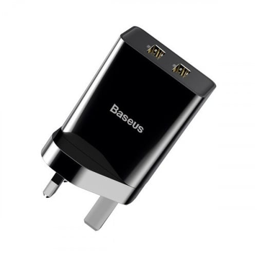 شاحن جداري بمنفذين USB من بيسوس ، يتوافق مع مختلف الأجهزة وسهل التنقل والحمل ، أمن يعمل على نظام حماية جهازك من التيارات الزائدة - لون اسود