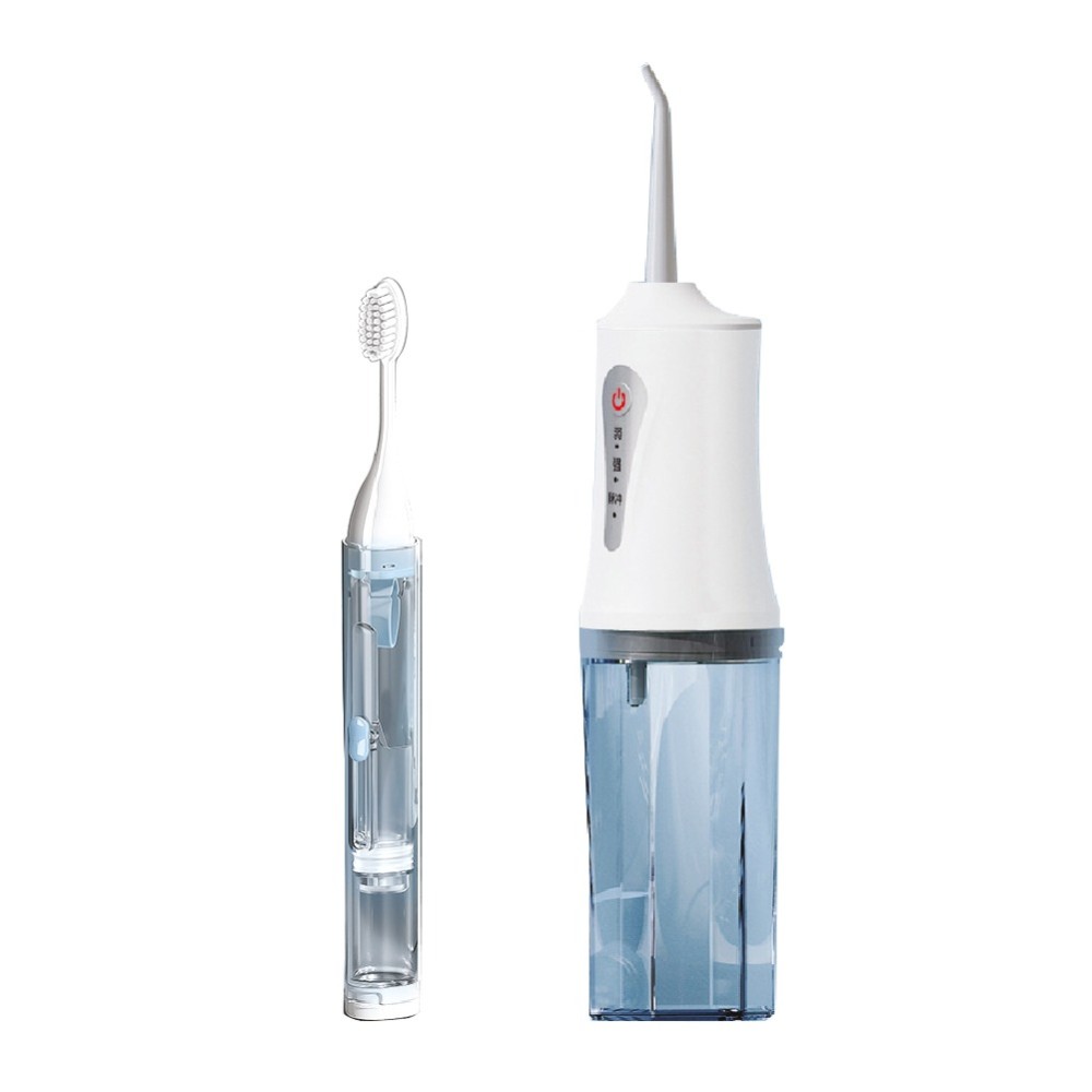 مجموعة العناية بالأسنان مكونة من الخيط المائي لتنظيف بين الأسنان و فرشاة اسنان ذكية مزودة بخزان للمعجون