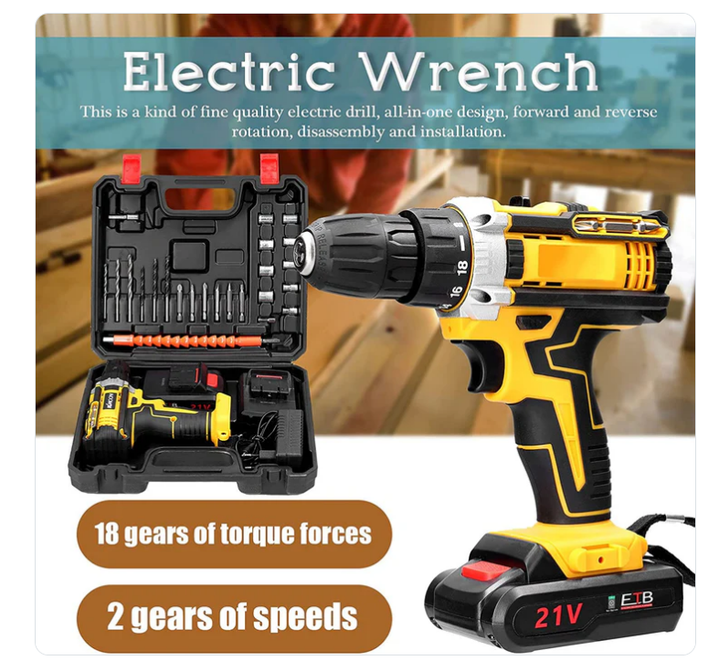 مجموعة عدة دريل متكاملة لاستخدامات كثيرة تأتي بشنطة انيقة ومحكمة الاغلاق تحتوي على دريل يعمل بالبطارية وبطاريتين وشاحن, تأتي مع مفكات ومثقاب للدريل بمقاسات مختلفة يبلغ عددها 25 قطعة اساسية .