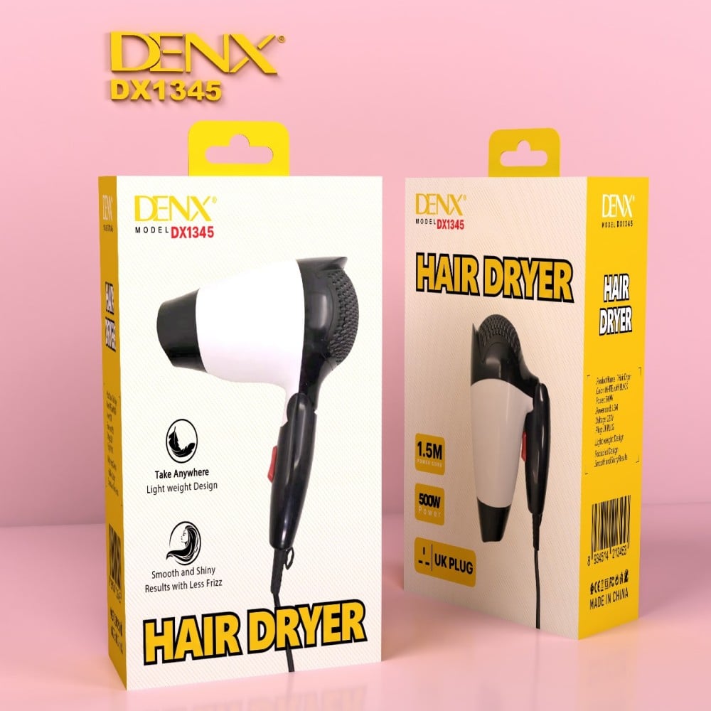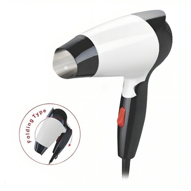استشوار مجفف شعر كهربائي مناسب للسفر والاستخدام المنزلي والصالونات ابيض واسود من دينكس DX1345