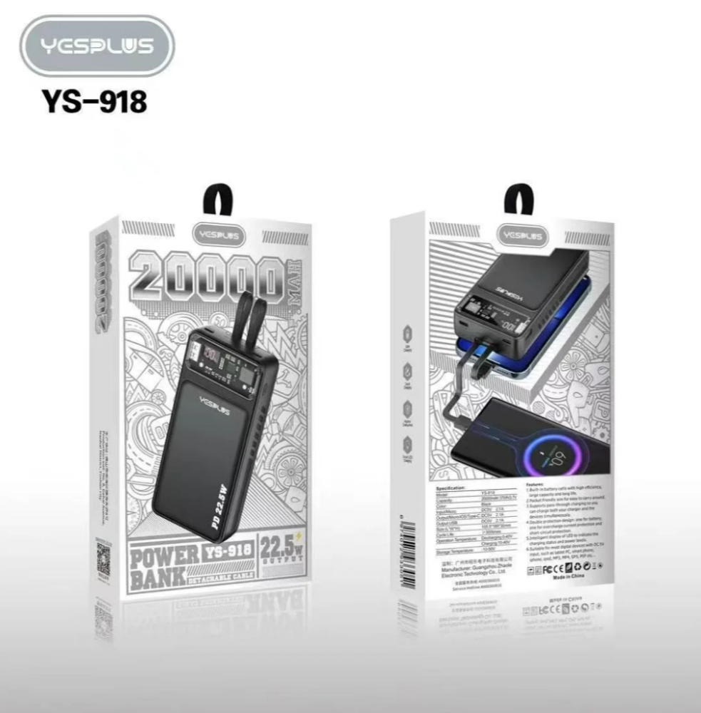بطارية باوربانك سعة 20000 ملي امبير بقوة 22.5 واط YESPLUS YS-918