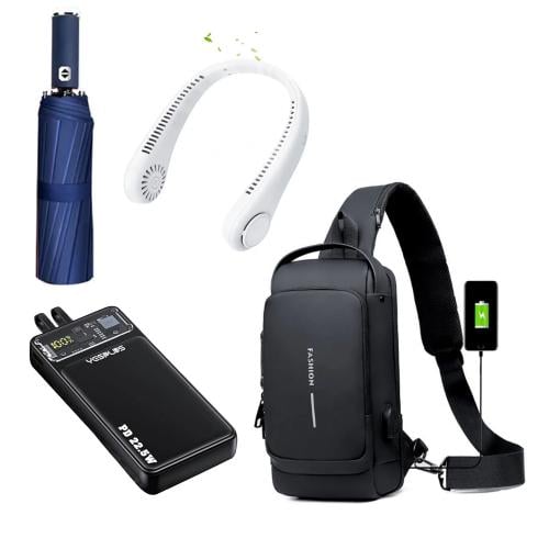 واسعة من الداخل ، خفيفة الوزن مع منفذ شحن USB - لون اسود