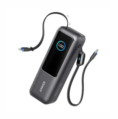 شاحن أنكر باور بانك 25000mAh 165W شاحن محمول فائق السرعة مع كابلات USB-C مدمجة وقابلة للسحب (الموديل A1695)