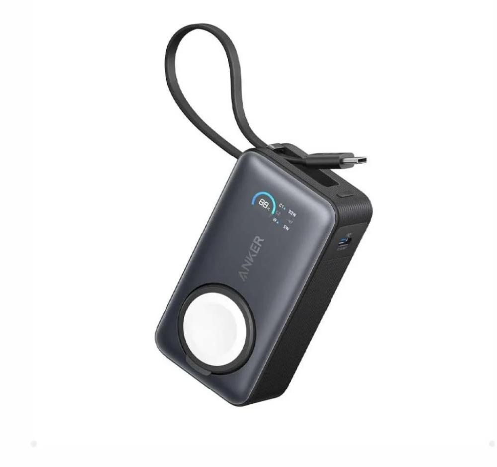 قم بشحن أجهزتك الإلكترونية بسلاسة باستخدام باور بانك قوي بسعة 10,000mAh، والذي يتضمن شاحن قابل للتعديل لساعة Apple وكابل USB-C مدمج لشحن سريع أثناء التنقل.