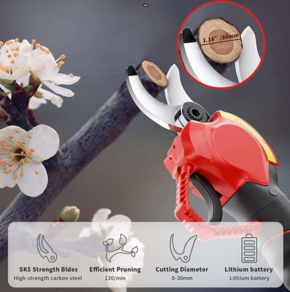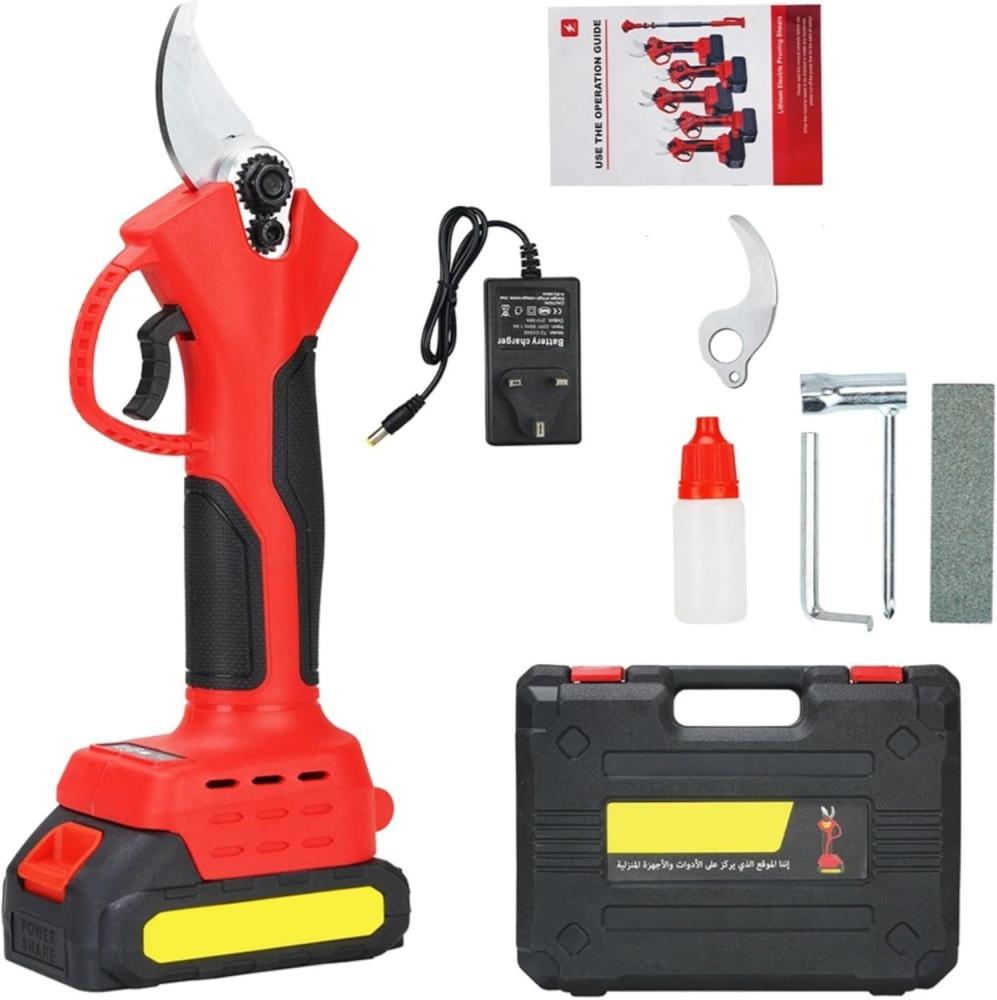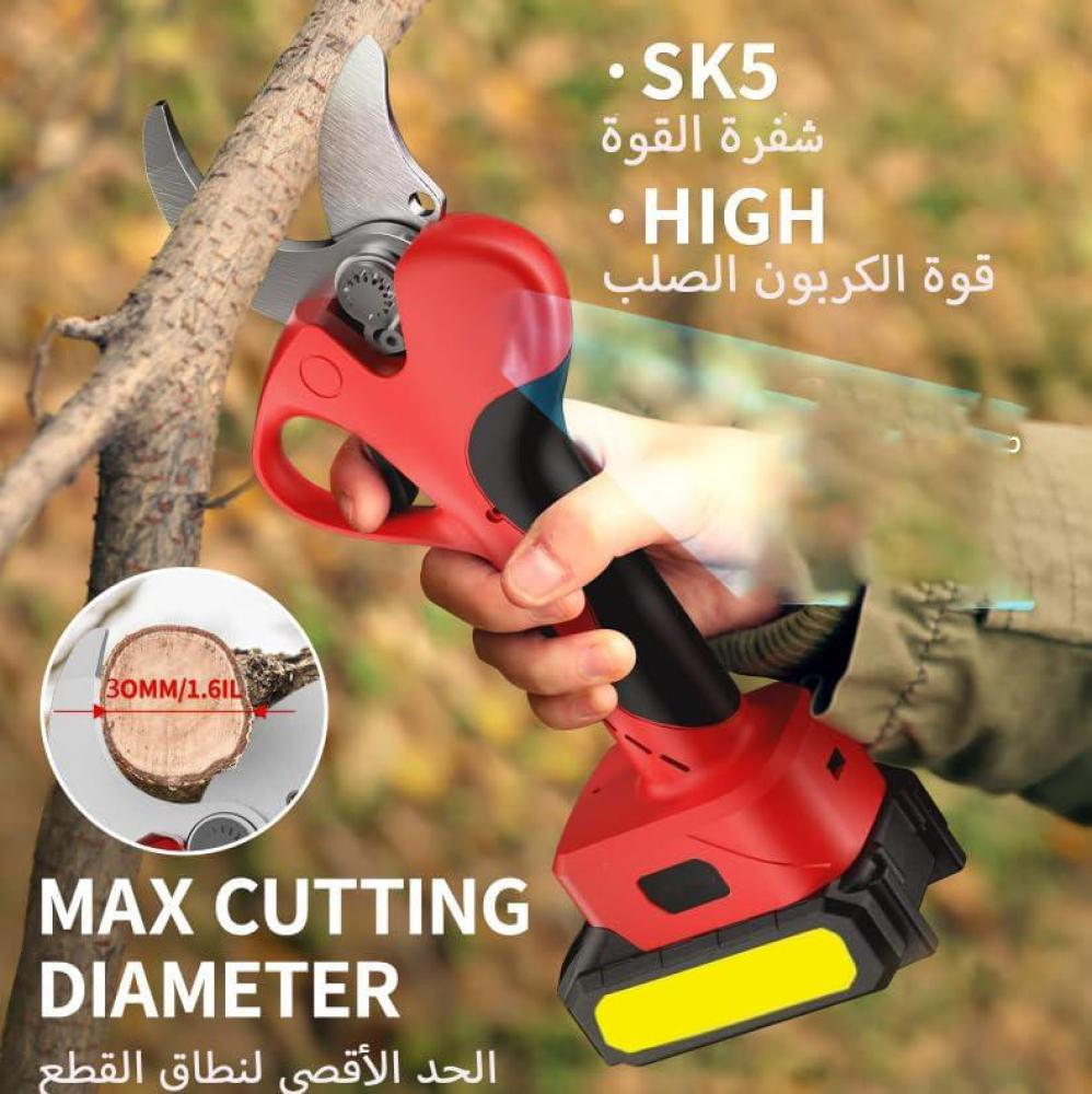 مقص تقليم كهربائي لاسلكي احترافي مع بطارية قابلة لاعادة الشحن ببطارية ليثيوم 3Ah لقص وتقليم فروع الاشجار، قطر القطع 28 ملم