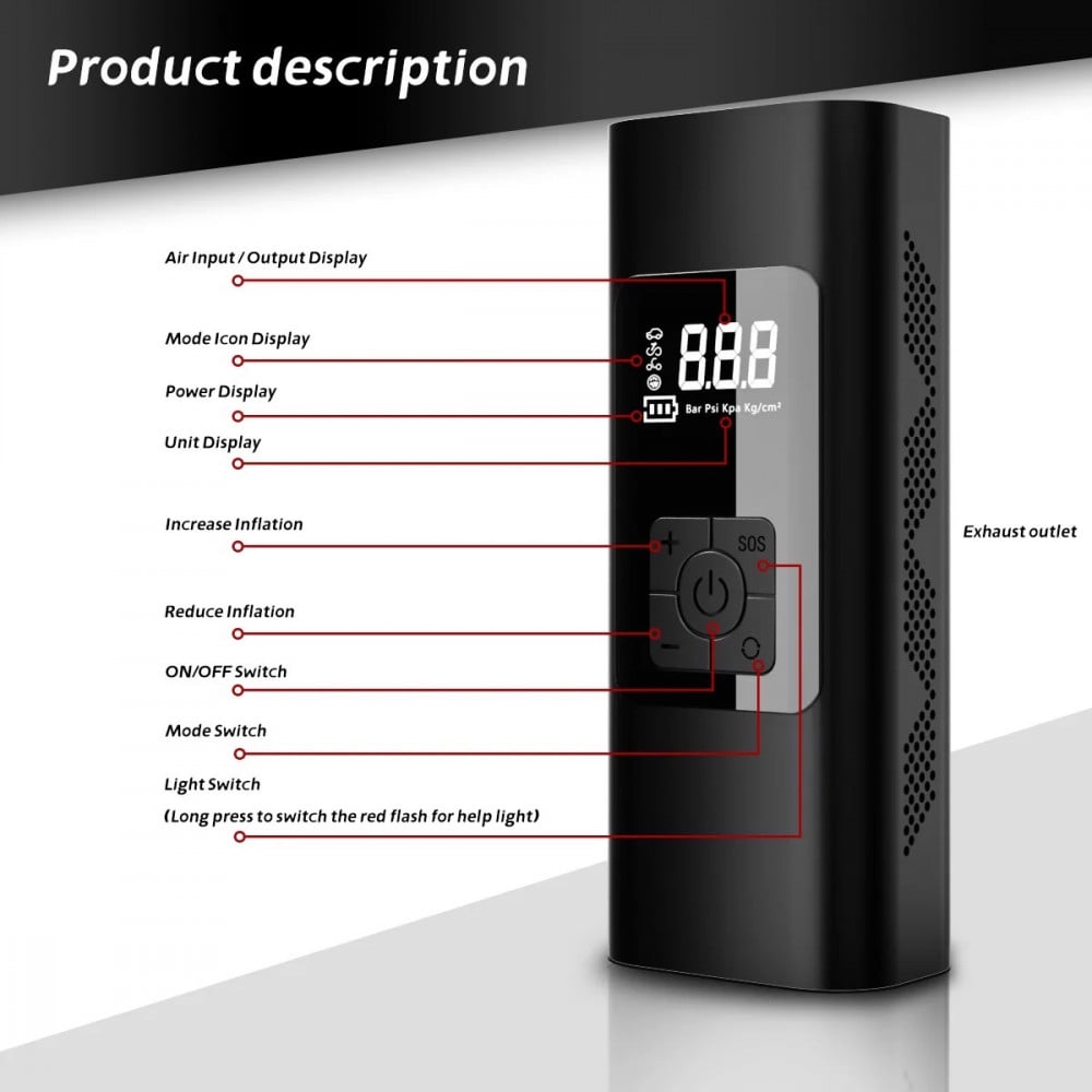 سعة البطارية في المنفاخ تعادل 6000 ملي امبير ، وقوة ضغط الهواء 150 PSI