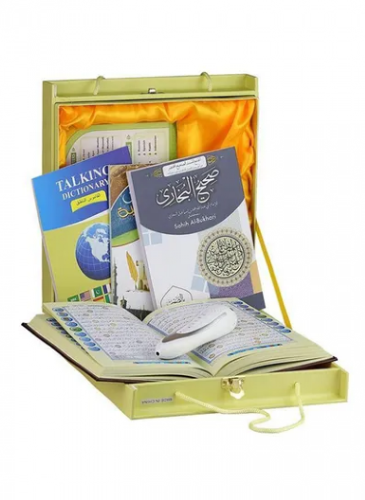 قلم رقمي قارئ للقران الكريم بترجمة صوتية متعددة للمستخدمين من كل اللغات ، و يتميز بنقاء الصوت والدقة في تفسير الآيات ، ويمكن التحكم من خلاله ب حجم الخط لتسهيل القراءة