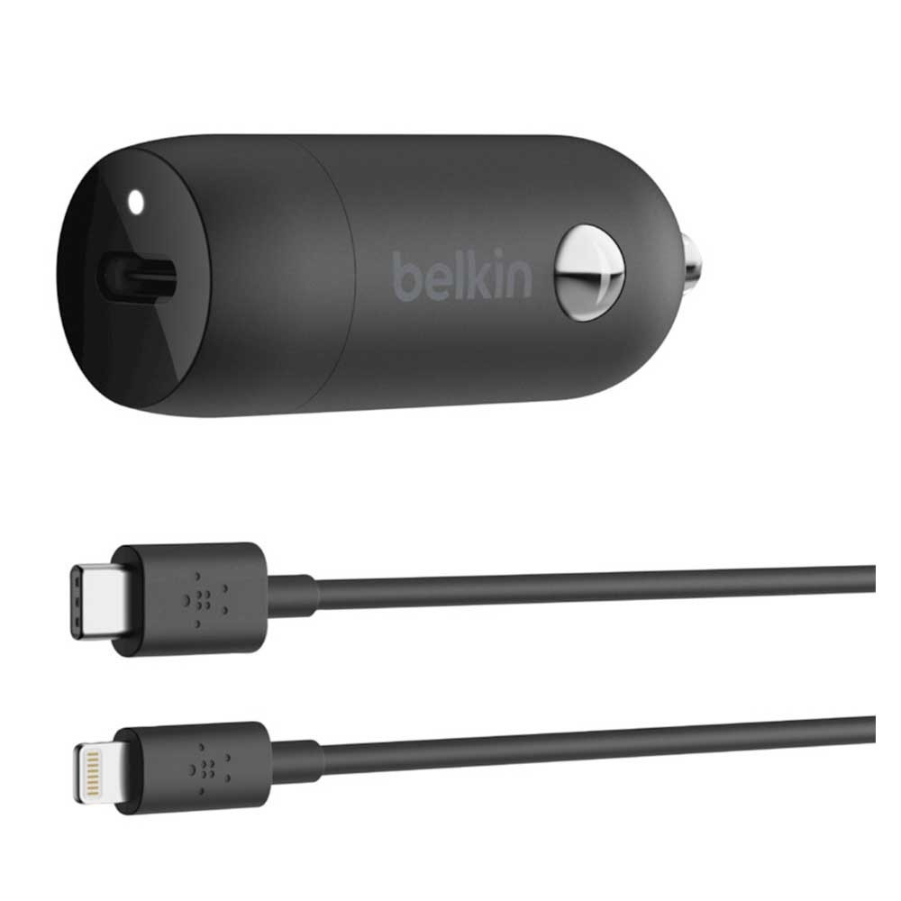 Belkin 20-watt PD car charger, equipped with a Type-C to Lightning adapter cable, compatible with all smart devices, protects the device from overcharging