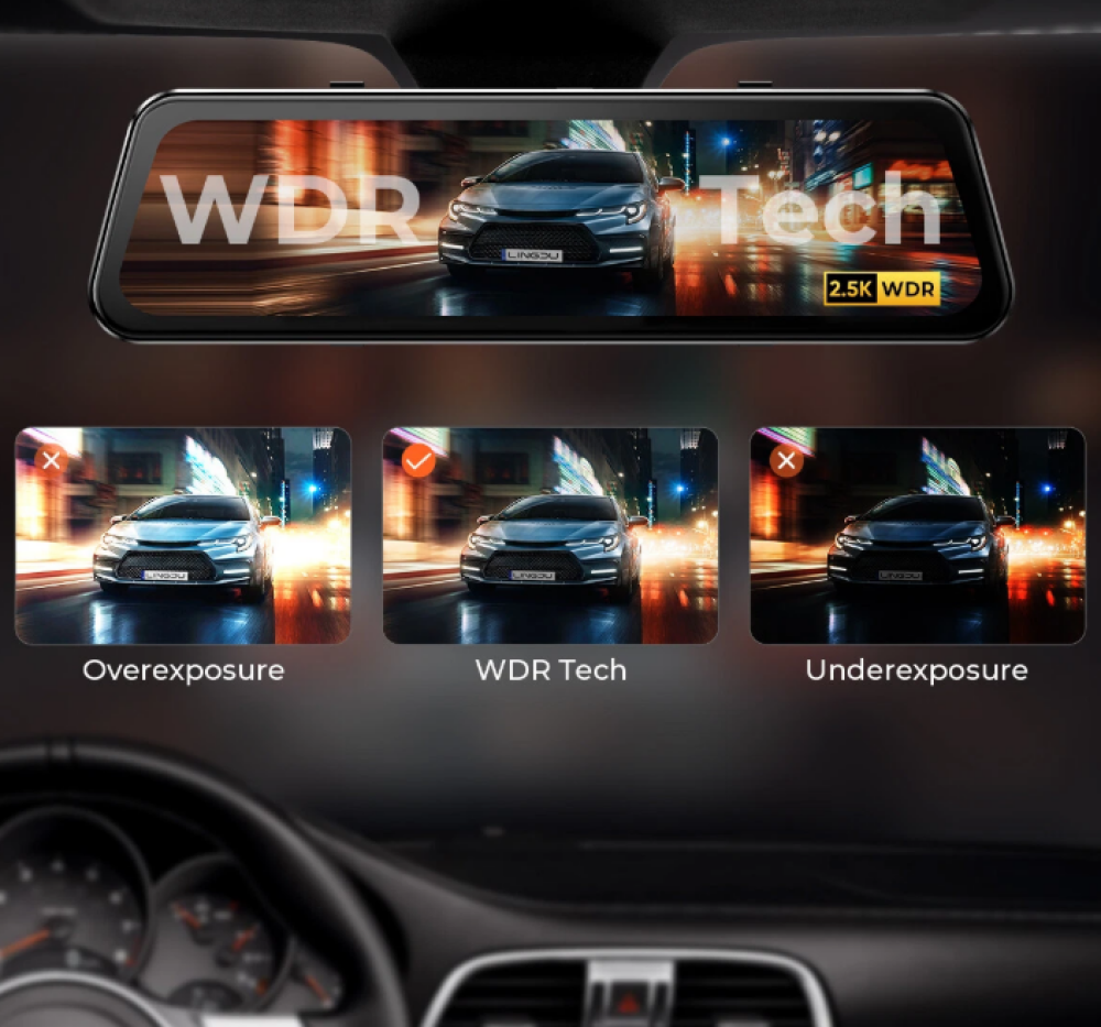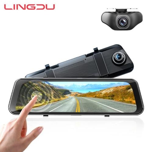 مرايا سيارة امامية مزودة بكاميرا داش كام امامية وخلفية بدقة 4K من LNGDU LD2K