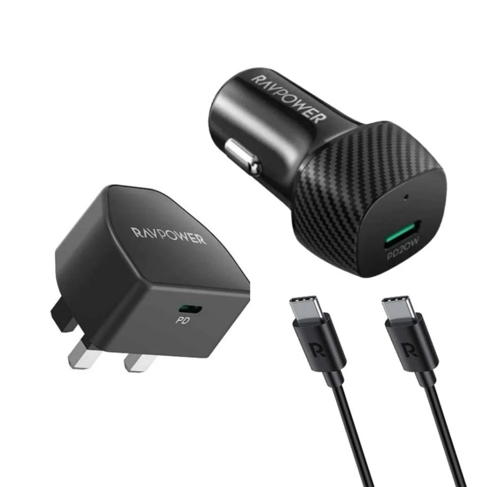 مجموعة الشحن RAVPower RP-PC1081 هي حزمة متكاملة تضم ثلاثة منتجات أساسية لتلبية احتياجات الشحن المتنوعة: