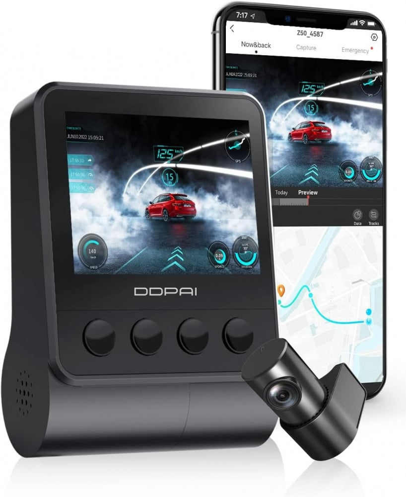 DDPAI Dashcam Z50, 4K HD, dual front and rear cameras, Wi-Fi and GPS